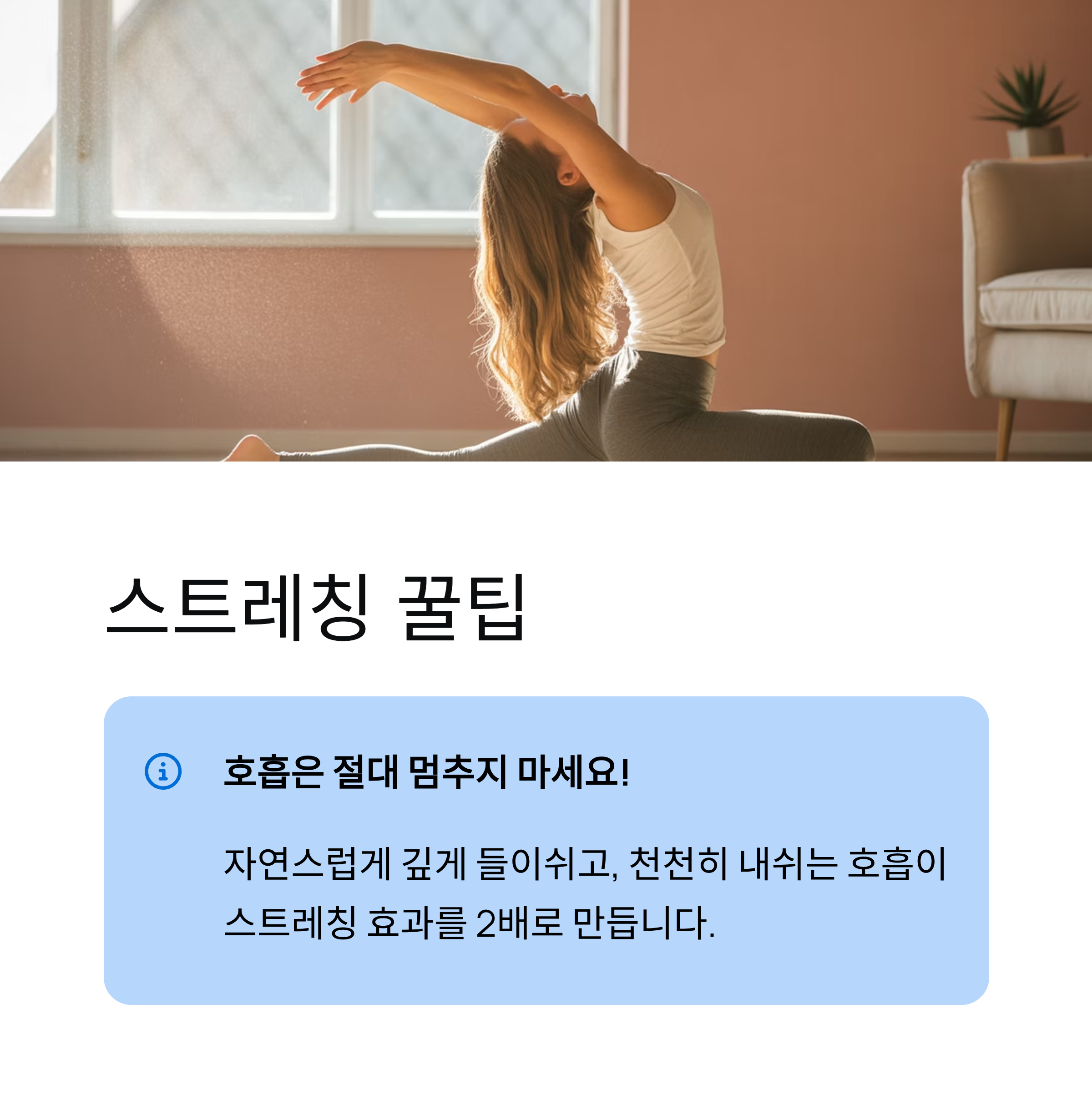 📌 꿀팁: 스트레칭 중 호흡은 절대 멈추지 마세요!