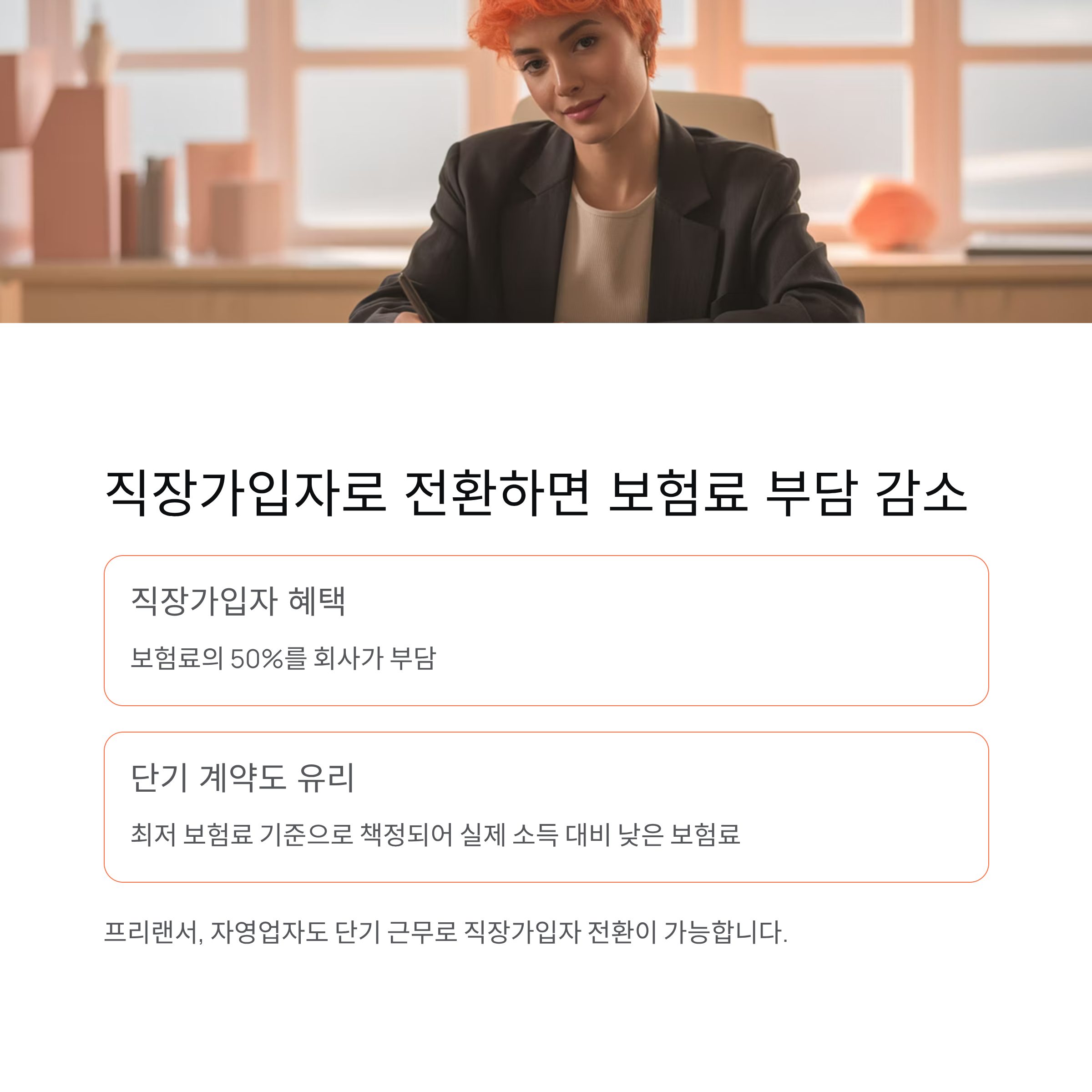직장 전환 | 프리랜서도 단기 근무로 직장가입자 등록 가능 |