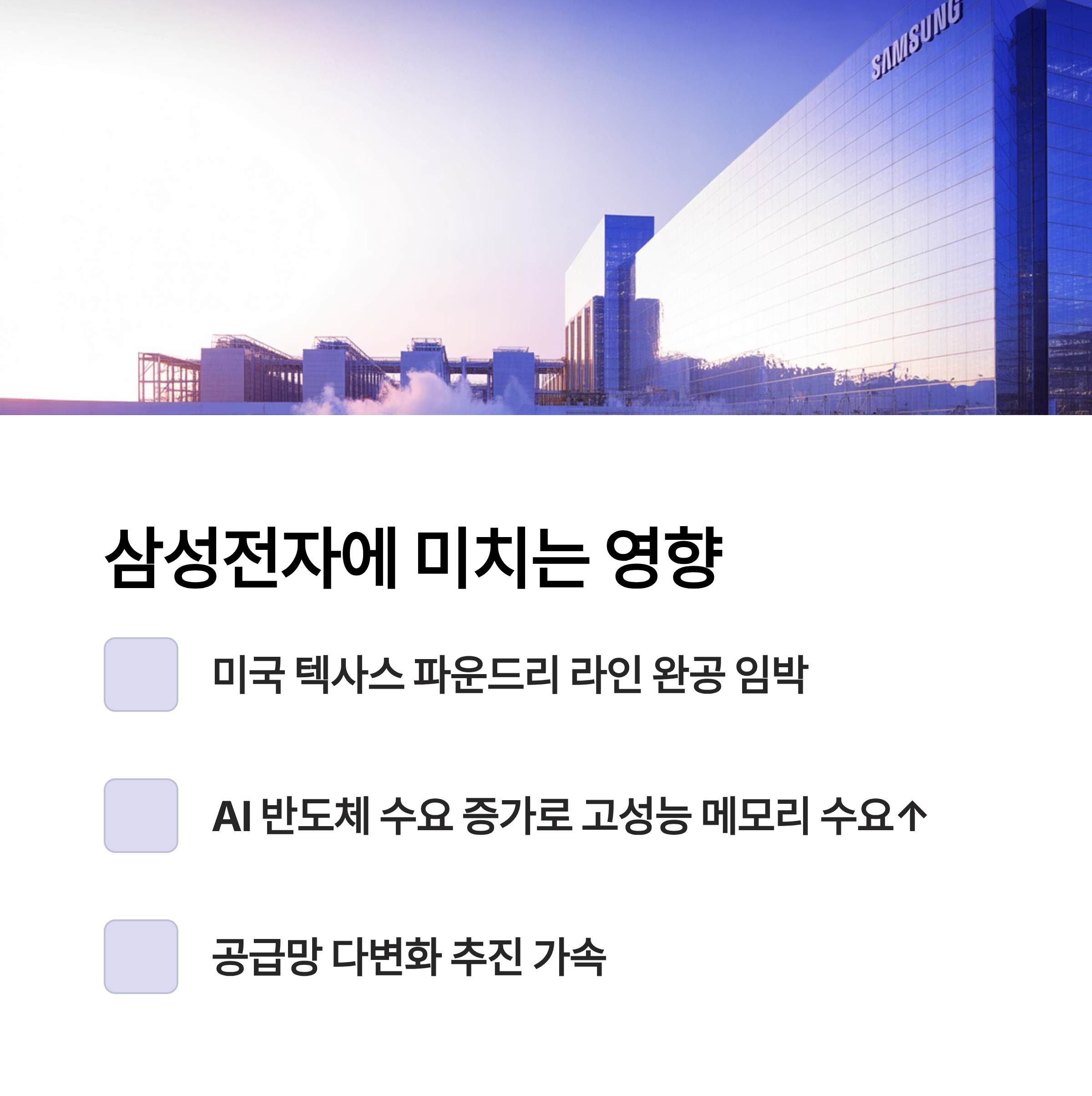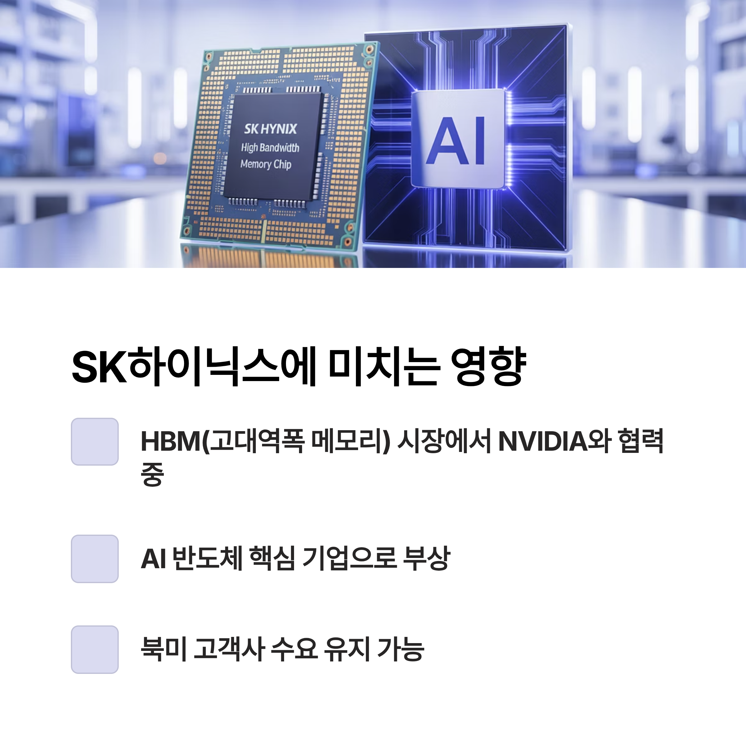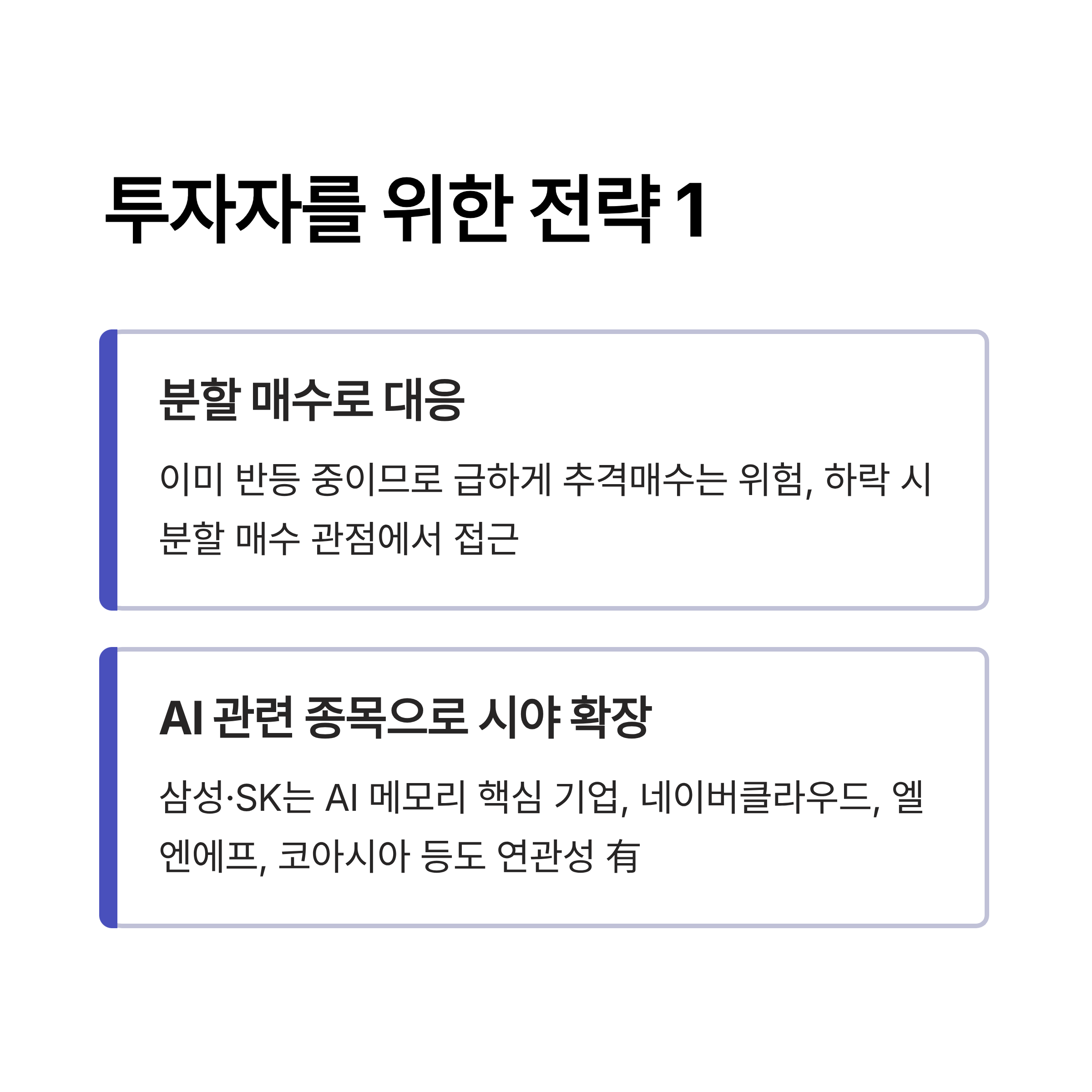 - AI 반도체 수요 증가 → 데이터센터·서버용 고성능 메모리 수요↑