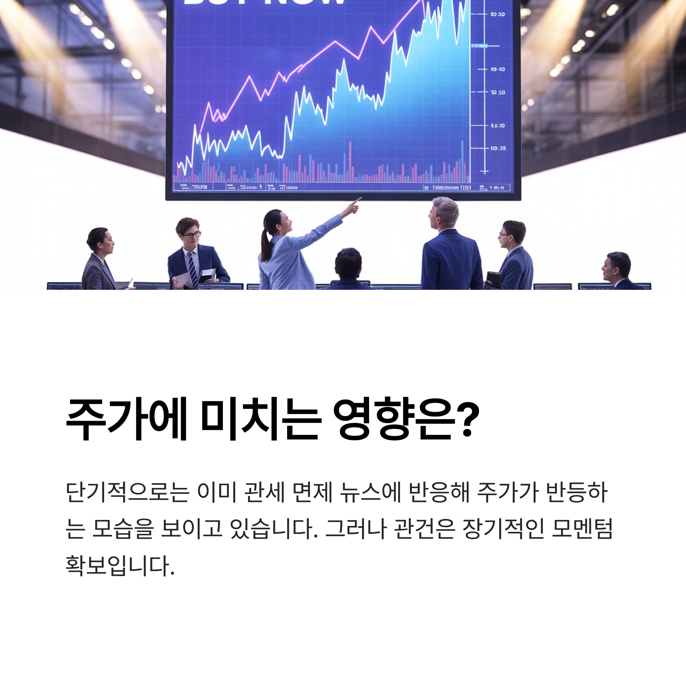 관세 면제 뉴스는 단기 이슈로 끝나지 않습니다. 다음과 같은 투자 전략을 고려해볼 수 있습니다.