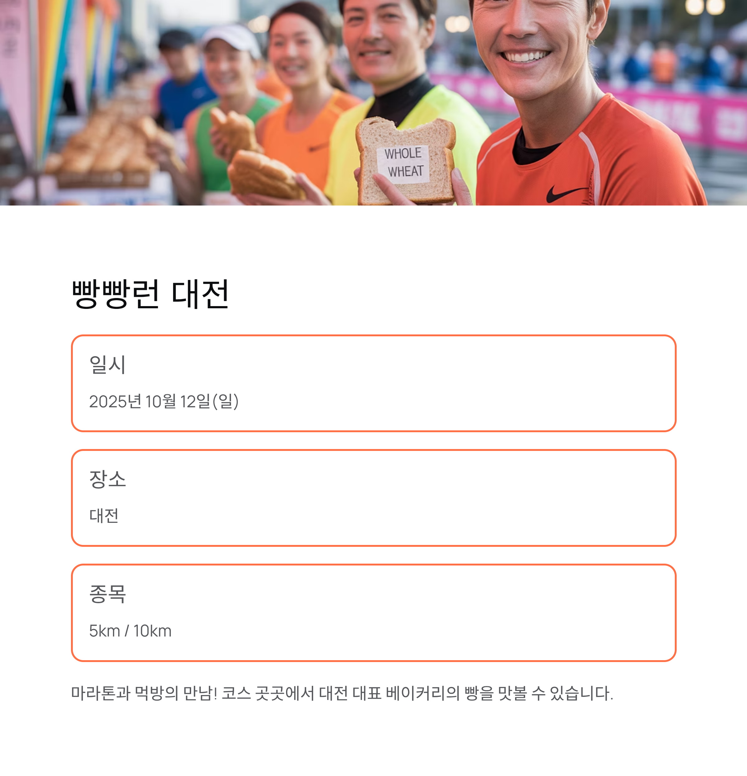 - 특징: 대전 대표 베이커리와 함께하는 러닝