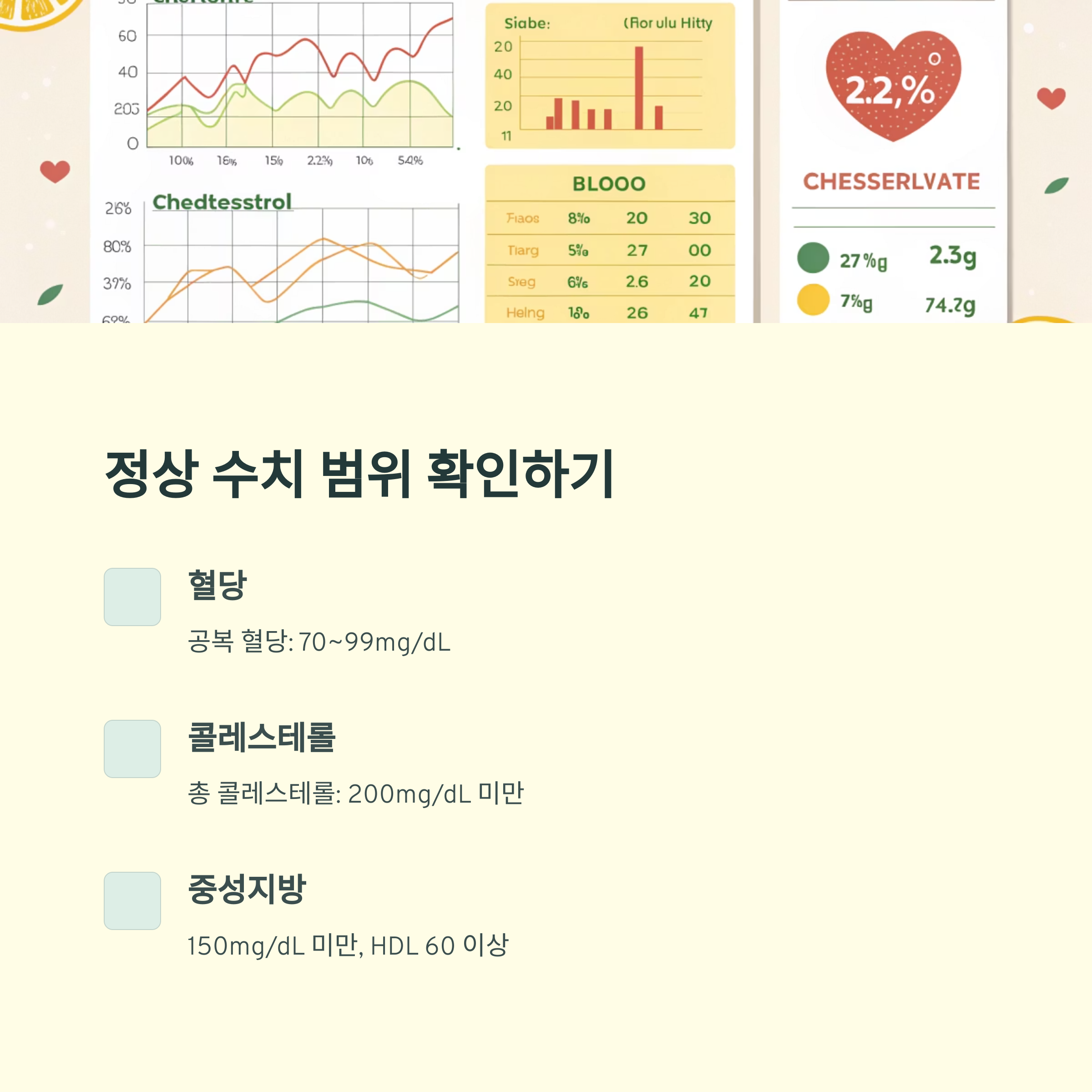 검진 결과를 받았을 때 당황하지 않도록, 기본적인 수치 범위를 기억해두면 도움이 됩니다.
